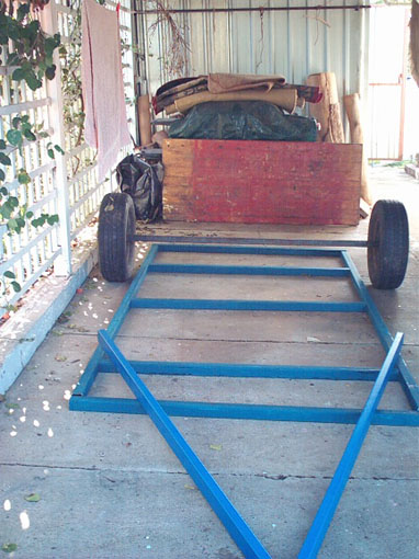 - Chassis: 50mm x 50mm welded together by Chris Cox