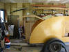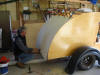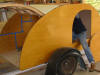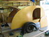 John is another one of our keen home builders. I asked him to send in a few words... "I saw an ad for teardrop plans in a copy of Fine Homebuilding magazine and thought I wouldn't mind building one of those. I sent away for a template modified it to a 2.7 metre length and after sourcing materials, I think I took about 9 months off and on building it. I had an annexe custom made for the kitchen end and we have had a few trips. We keep saying we must do more." ...Ok, so John isn't really a chatty man... he is a doer... and what a teardrop!... John Walker's teardrop built 2005, Email John |